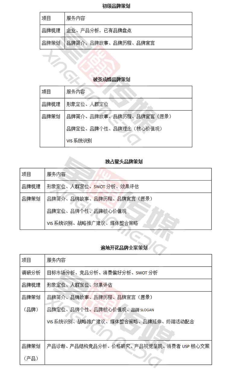 星瀚传媒品牌策划为客户提供四种不同效果的品牌策划方案: