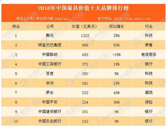 2018年最有价值的品牌排行榜